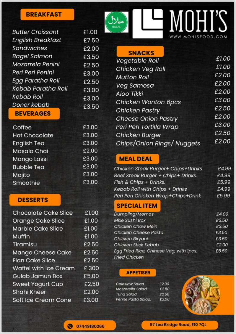 Welcome to Mohis Food & Drinks Menu